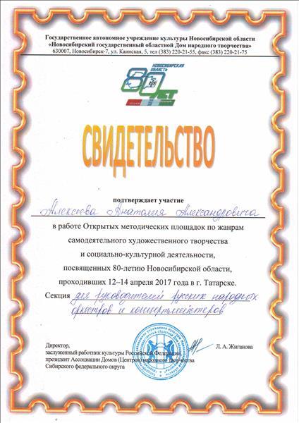 Свидетельство об участии в работе Открытых методических площадках, апрель 2017 г.
